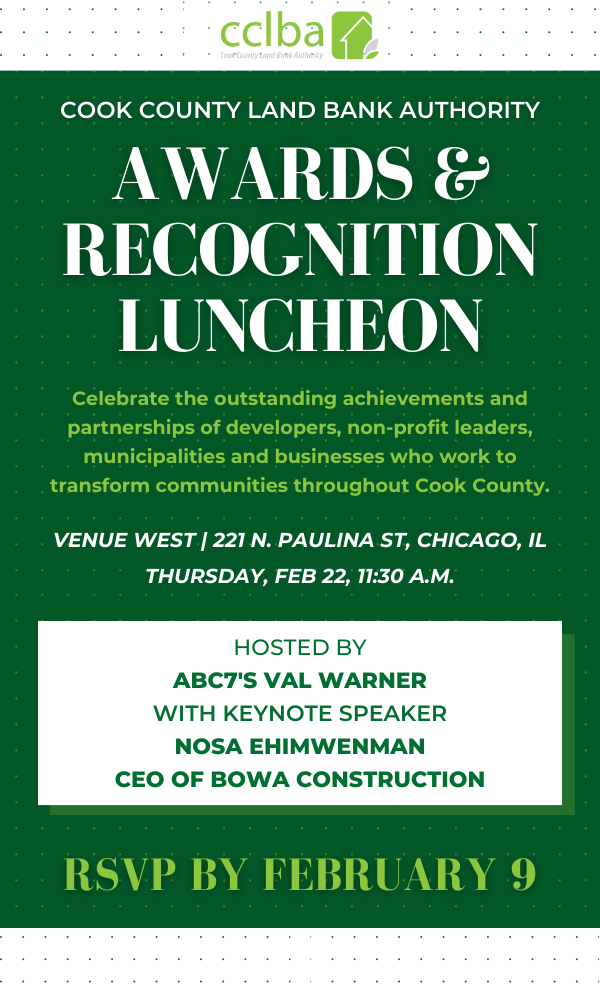 Celebrate the outstanding achievements and partnerships of developers, non-profit leaders, municipalities, and businesses who work to transform communities throughout Cook County. CLICK HERE TO